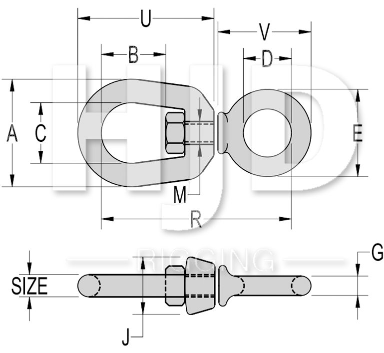 | Size | Stock No. | Working Load Limit (Ibs.)* | Weight Each (lbs.) | Dimensions(in.) | ||||||||||