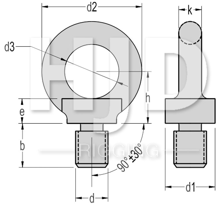 | Size (d) | Stock No. | Working Load Limit (t) | Weight Per 100 (kg) | Dimensions (mm) | ||||||