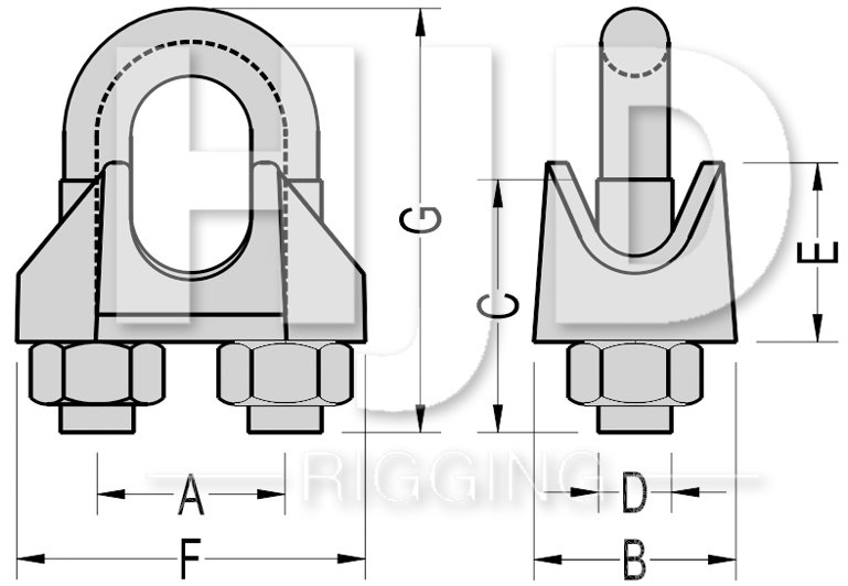 | Rope Size (mm) | Stock No. | Weight Each (kg) | Dimensions (mm) | ||||||
