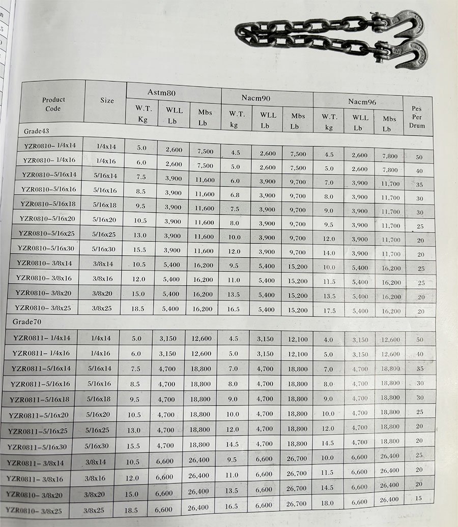 两端带有U形抓钩的链条